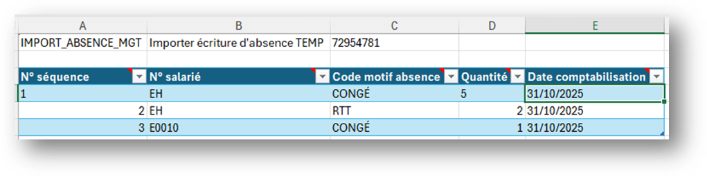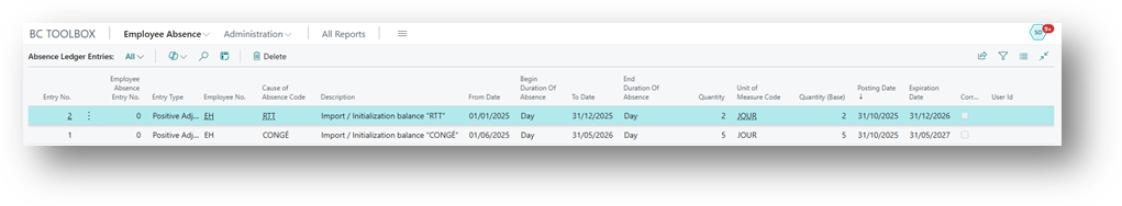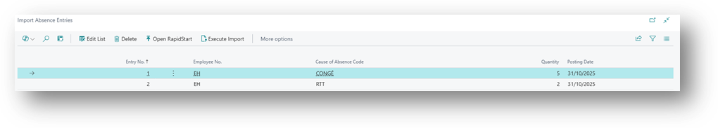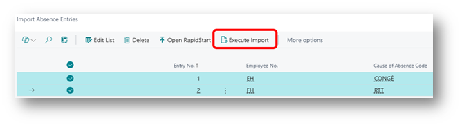 It is possible to import the employees' absence entries to take over an old balance already obtained before the implementation of the absence module.