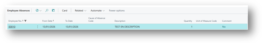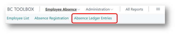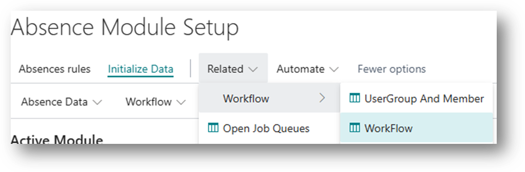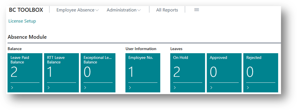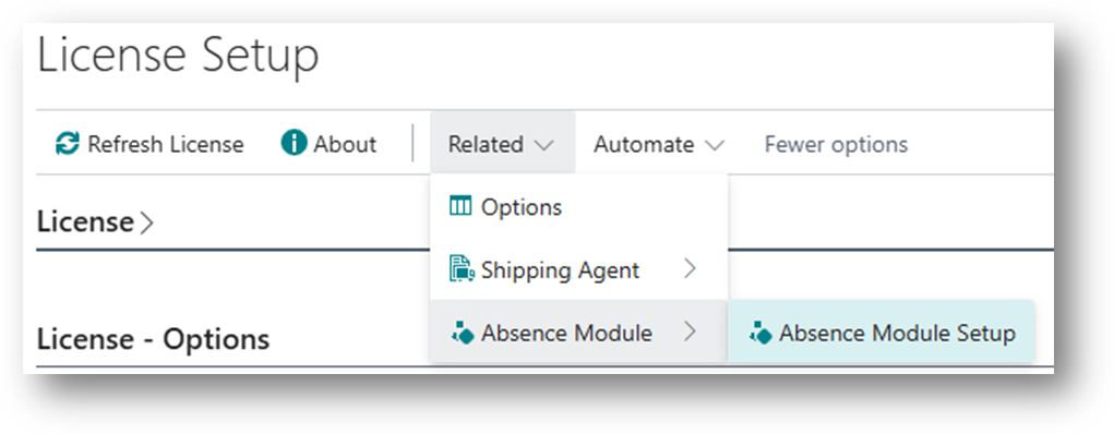 If the license is valid and the option is enabled, the absence module menu is displayed: