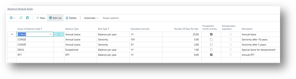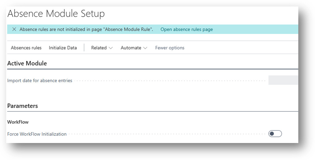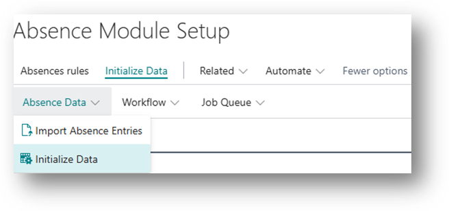 Data initialization means creating the absence entry lines for each type of leave defined in the absence rules for each employee.