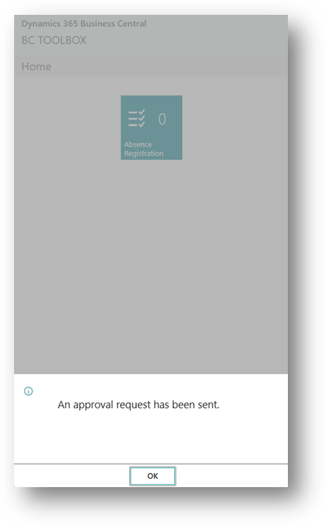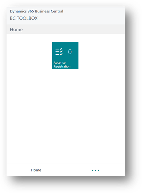 A specific dashboard has been created for the "Business Central" mobile application. This dashboard is called: "LEAVE REQUEST RC - PHONE".
