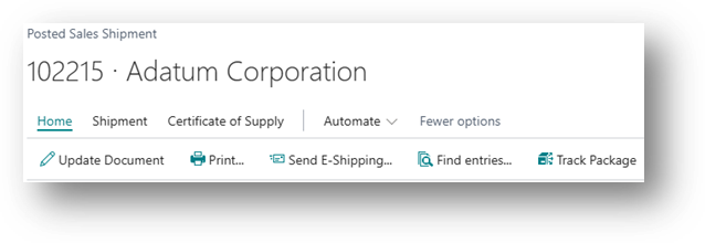 In the Posted Sales Shipment page, click Print/Send, then Send E-Shipping:
