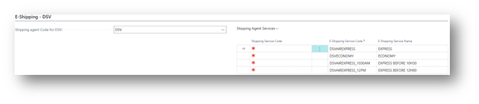 Then select for each row in « Shipping agent services » list, select a code to map to a shipping agent code (DSV).